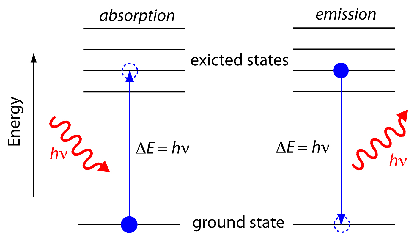 | emission | giving out / the process by which specific wavelengths of light energy (ElectroMagneticRadiation) are released by matter |